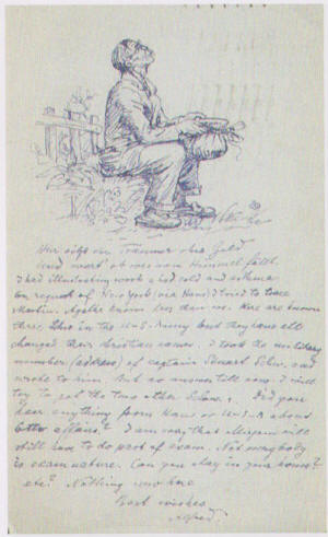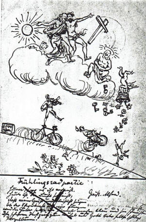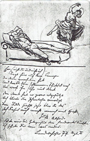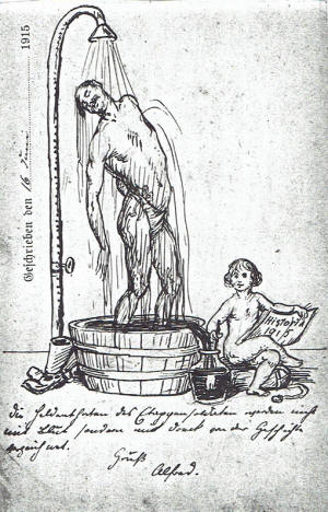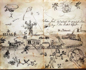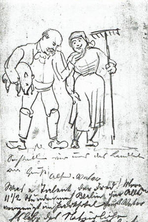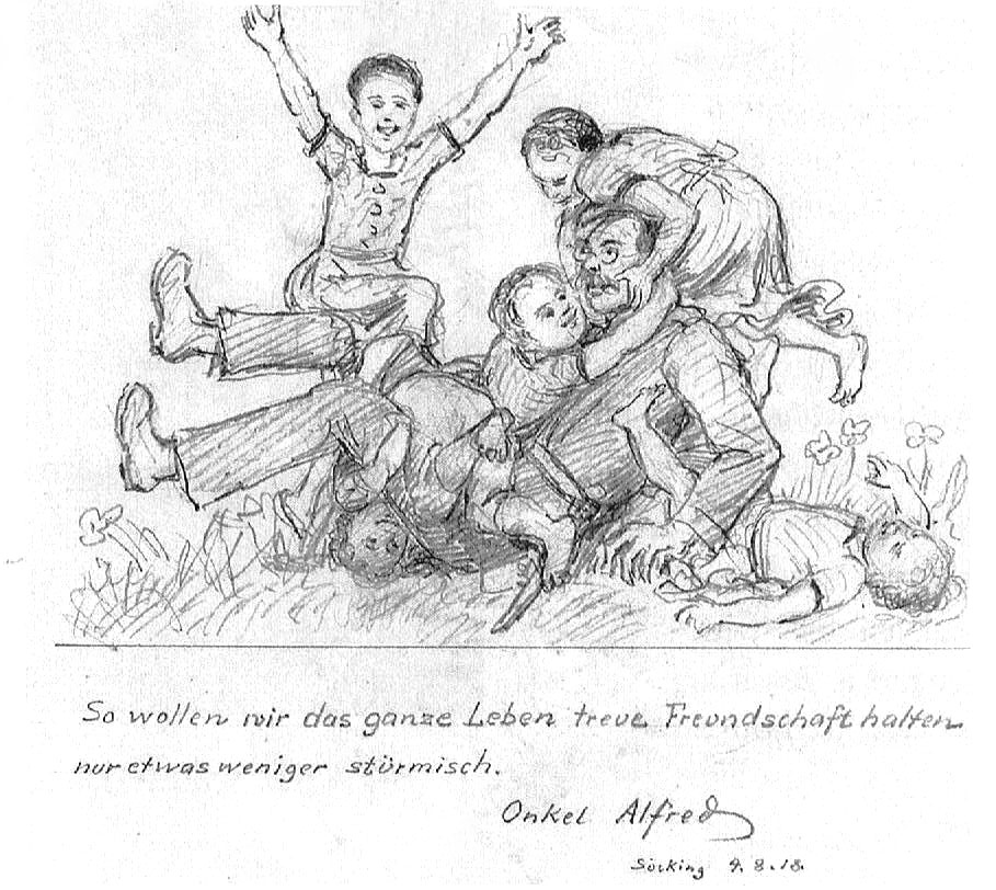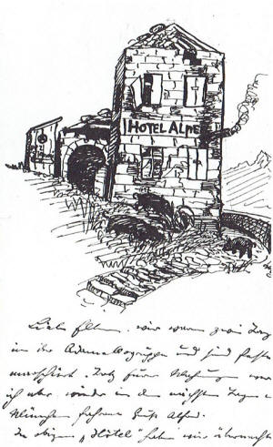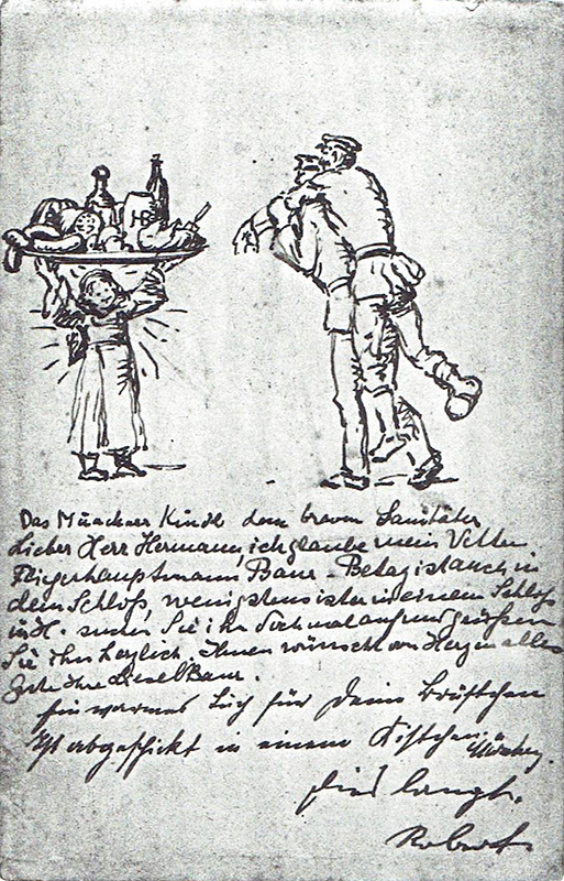 | Alfred was in the German Flying Corps during World War 1 as an observer, taking photographs and making sketches of enemy positions | Dear Hans. I wish you Happy Holidays .. Your Uncle Alfred. | Drawing for brother Otto | |||||||||