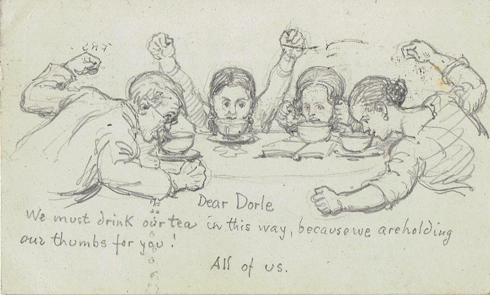 | 1922 card to Lottie & Richard Makeower | 1940 card | 1944 card (self portrait) | |||||||||