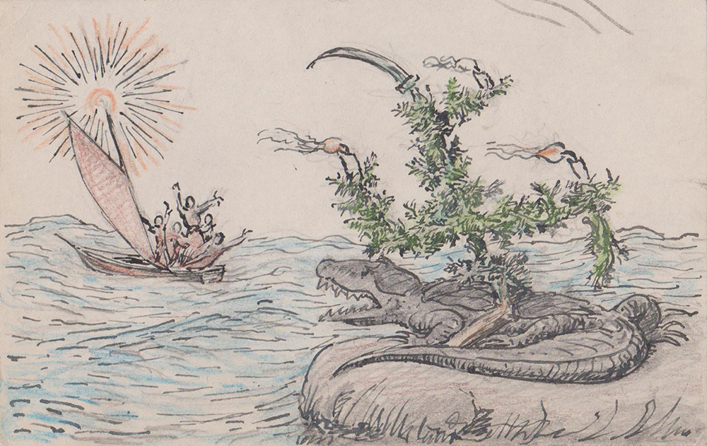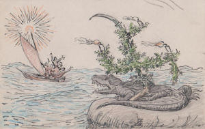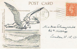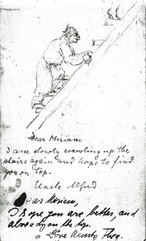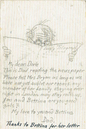 | "Uncle Alfred" | 1938 card to Mrs & Miss Younghusband announcing the family's escape from the Nazi crocodile | ||||||||||